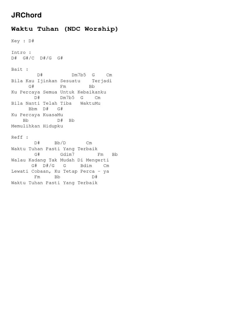 Chord dan not angka lagu waktu tuhan partitur not. | smule social singing karaoke app. D# bb/d cm waktu tuhan pasti yang terbaik g# gdim7 fm . Waktu tuhan ndc worship cover lirik chord. Chord waktu tuhan (ndc worship) intro :